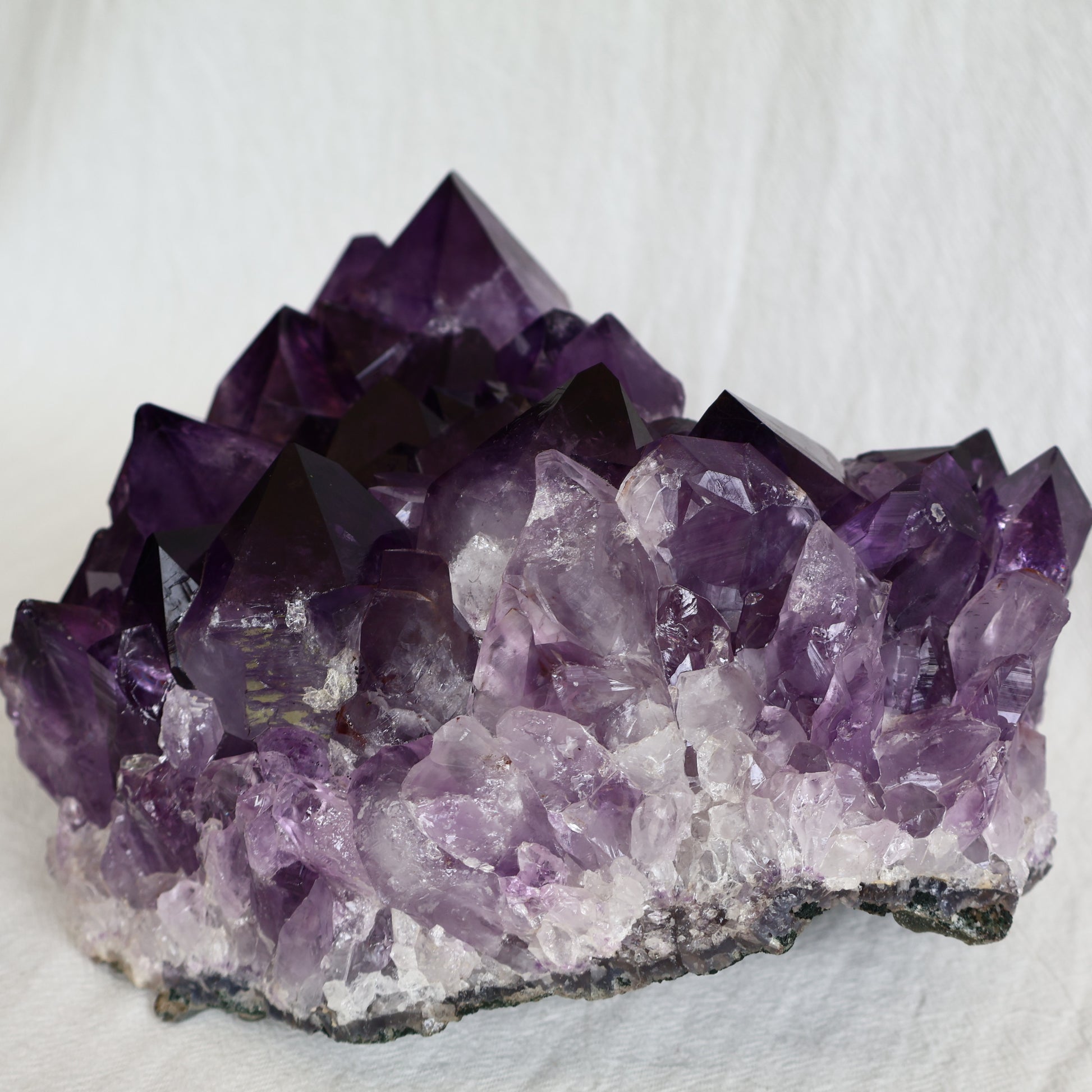 A true statement piece, this deep purple Amethyst cluster is a natural treasure of amazing quality. Weighing 2.891kg, it boasts rich, saturated colour and sparkling terminations that shimmer in the light.