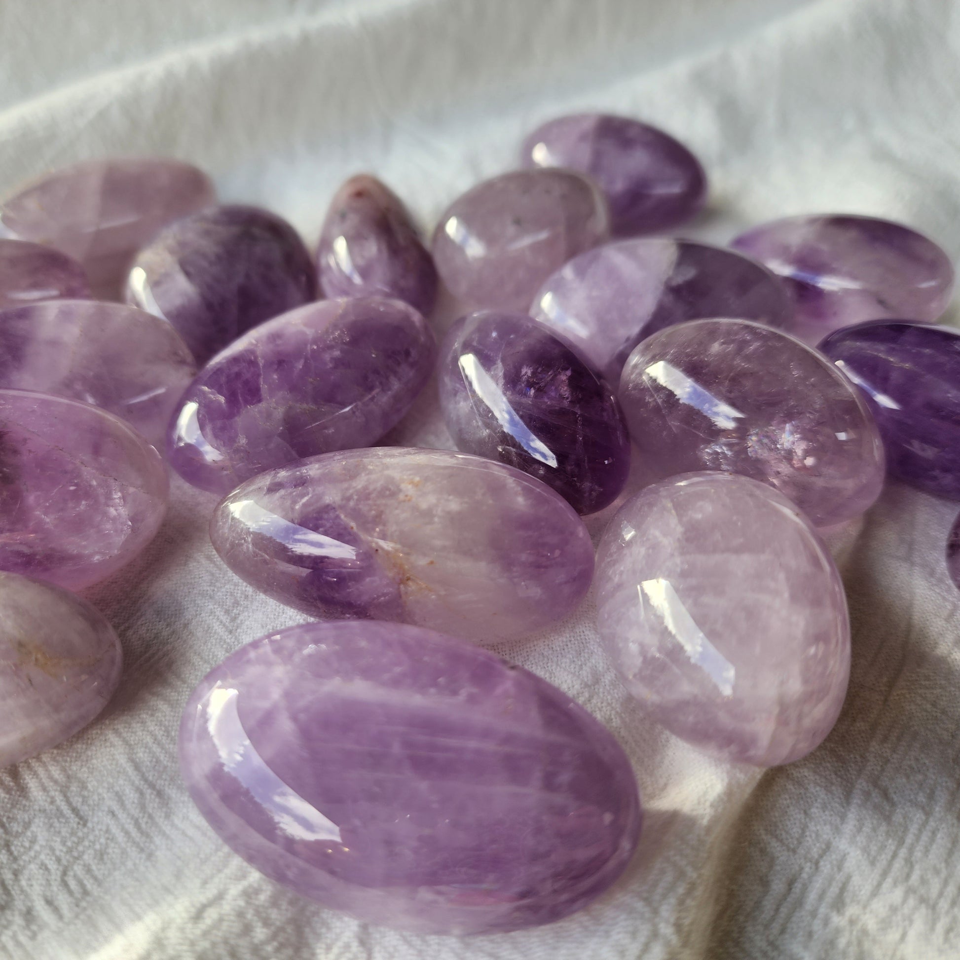 These Amethyst tumbles are calming companions—perfect for carrying in your pocket, adding to a crystal grid, or placing near your bed or meditation space. Their smooth, polished surface and soothing purple tones make them both beautiful and energetically supportive.