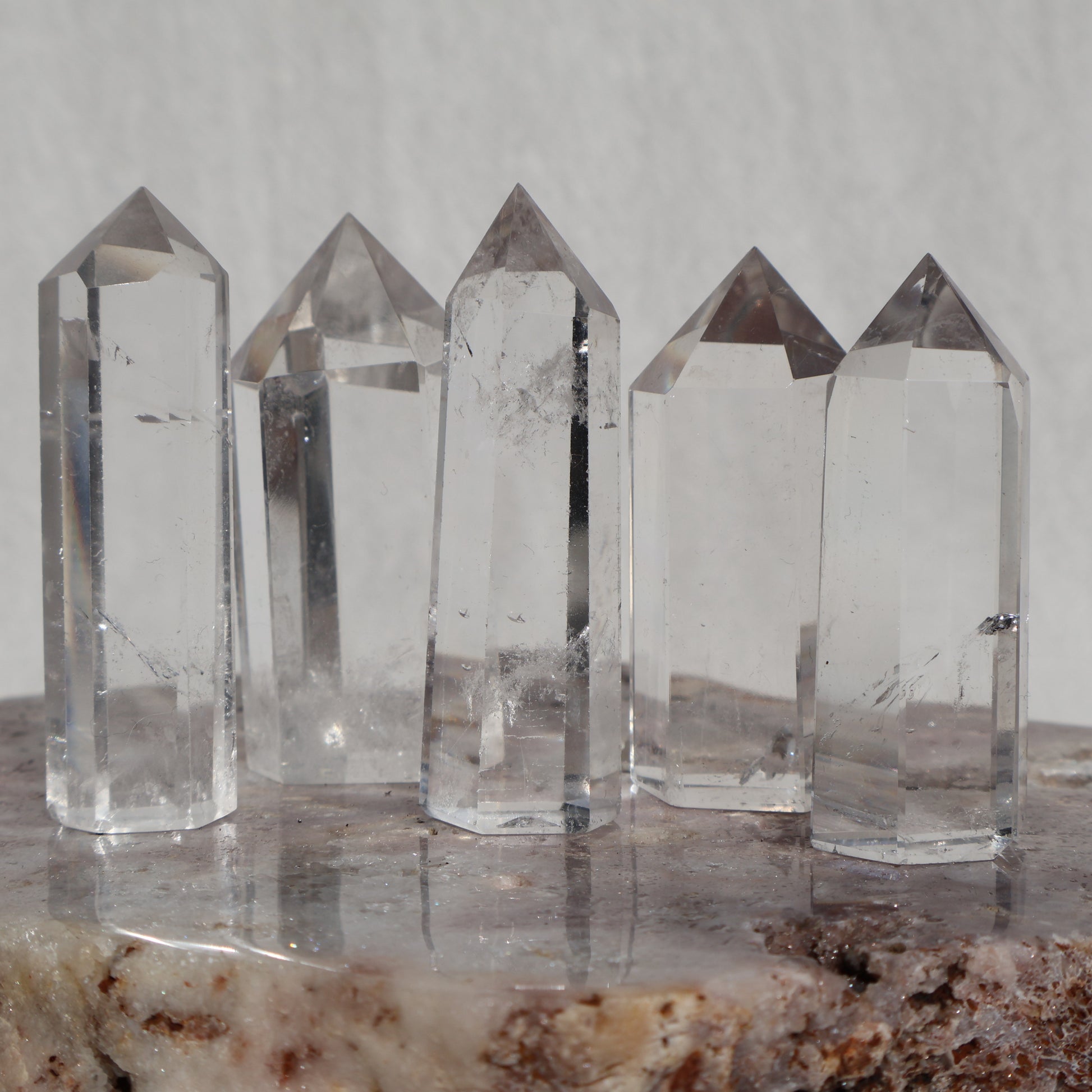 Clear Quartz forms deep within the Earth in hydrothermal veins, where mineral-rich water cools slowly over time, allowing the crystal to grow in clarity and structure. Its six-sided form naturally supports balance, focus, and energetic flow.