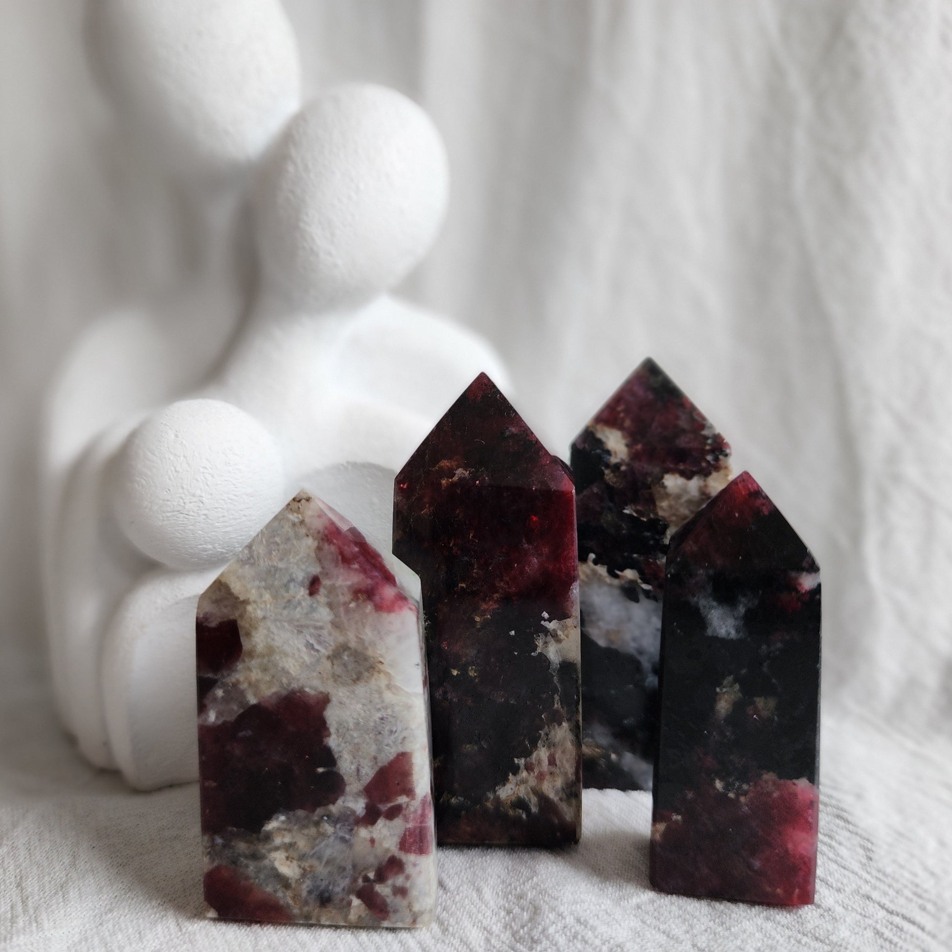 These gorgeous Eudialyte points are truly special and radiate vibrant energy. These beauties are full of character and complexity, making them a powerful and unique addition to any collection.