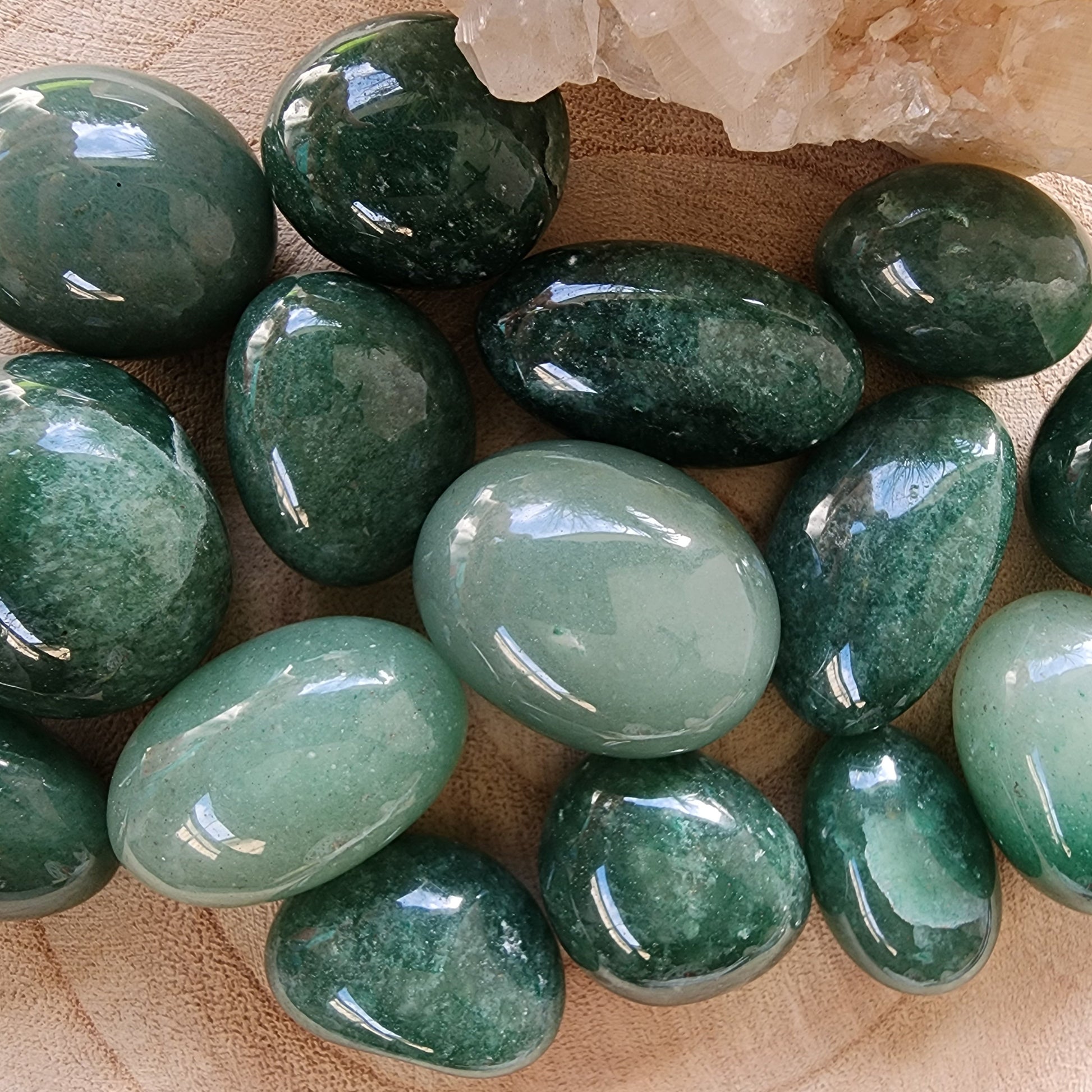 These soothing Green Aventurine tumbles are perfect companions for heart-centered work, prosperity rituals, or simply carrying a touch of gentle luck with you each day. Their smooth finish makes them ideal for pocket stones, meditation, or crystal grids.