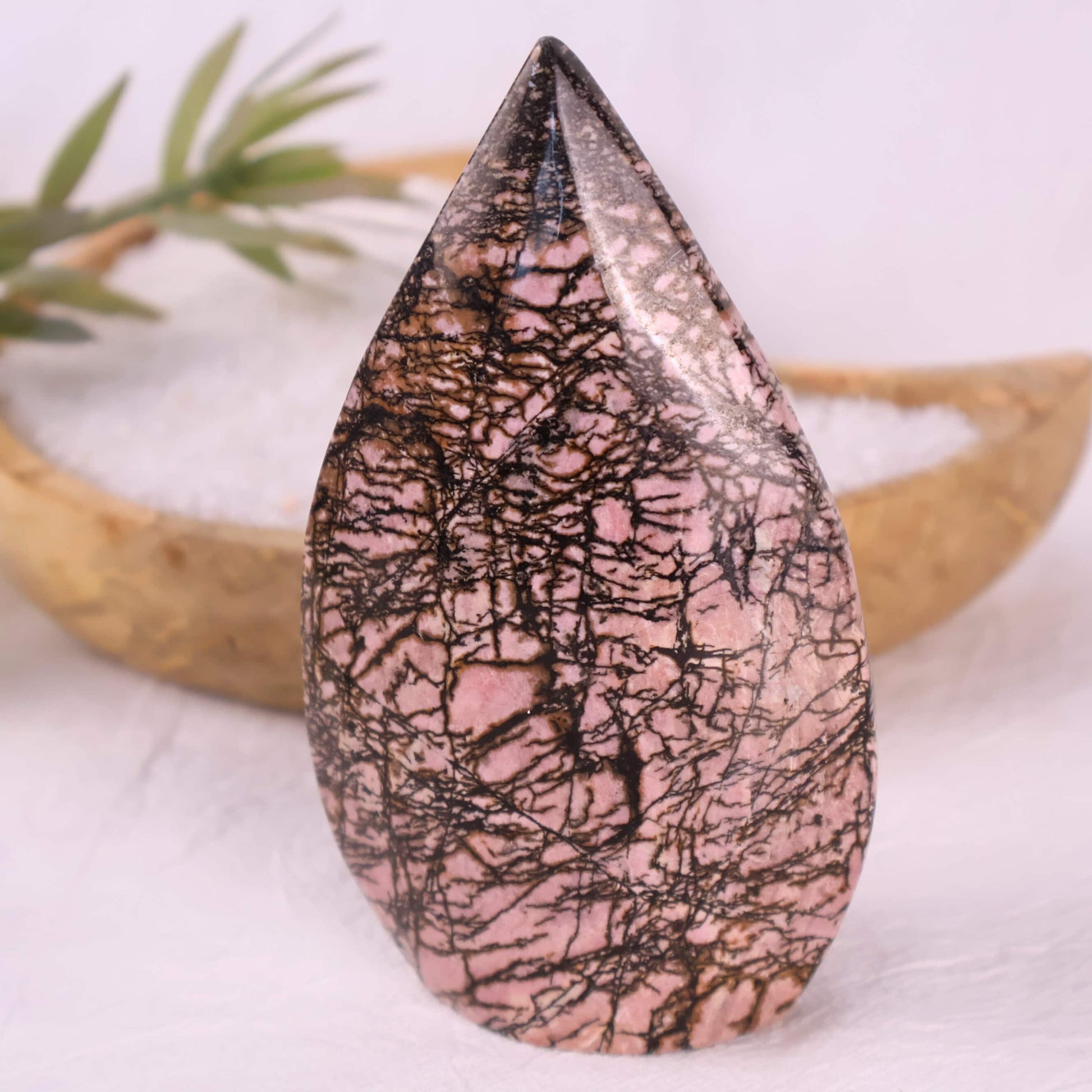 These Rhodonite teardrop carvings are beautifully polished to showcase their pink tones, black veining, and smooth, flowing form. The teardrop shape is often associated with emotional release and gentle healing, making these pieces both visually calming and symbolically meaningful.