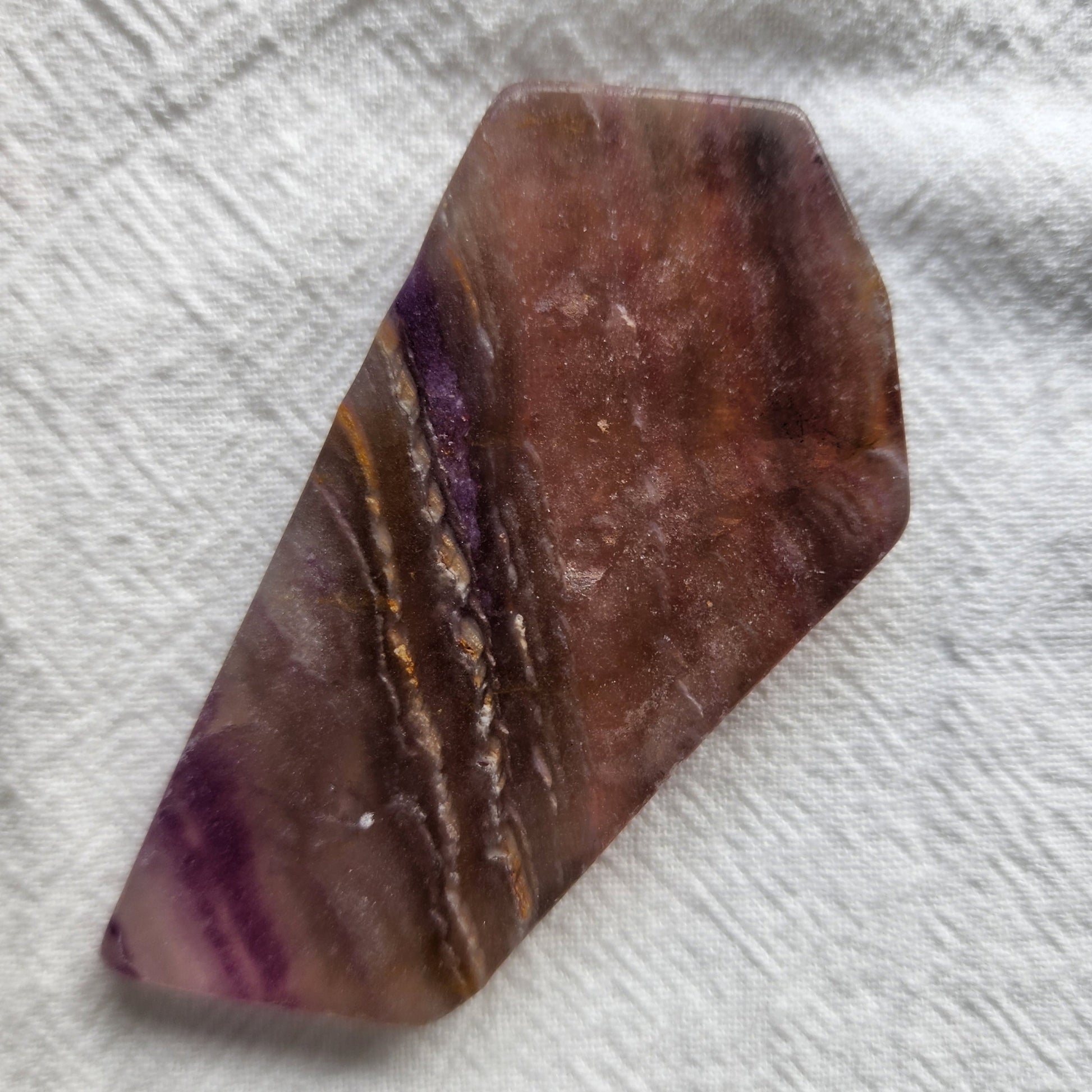 Fluorite forms in hydrothermal veins and sedimentary environments over millions of years, where minerals rich in calcium and fluoride crystallise into layered bands. Its vibrant colours come from trace minerals and natural radiation, making each slab a unique expression of the Earth’s artistry.