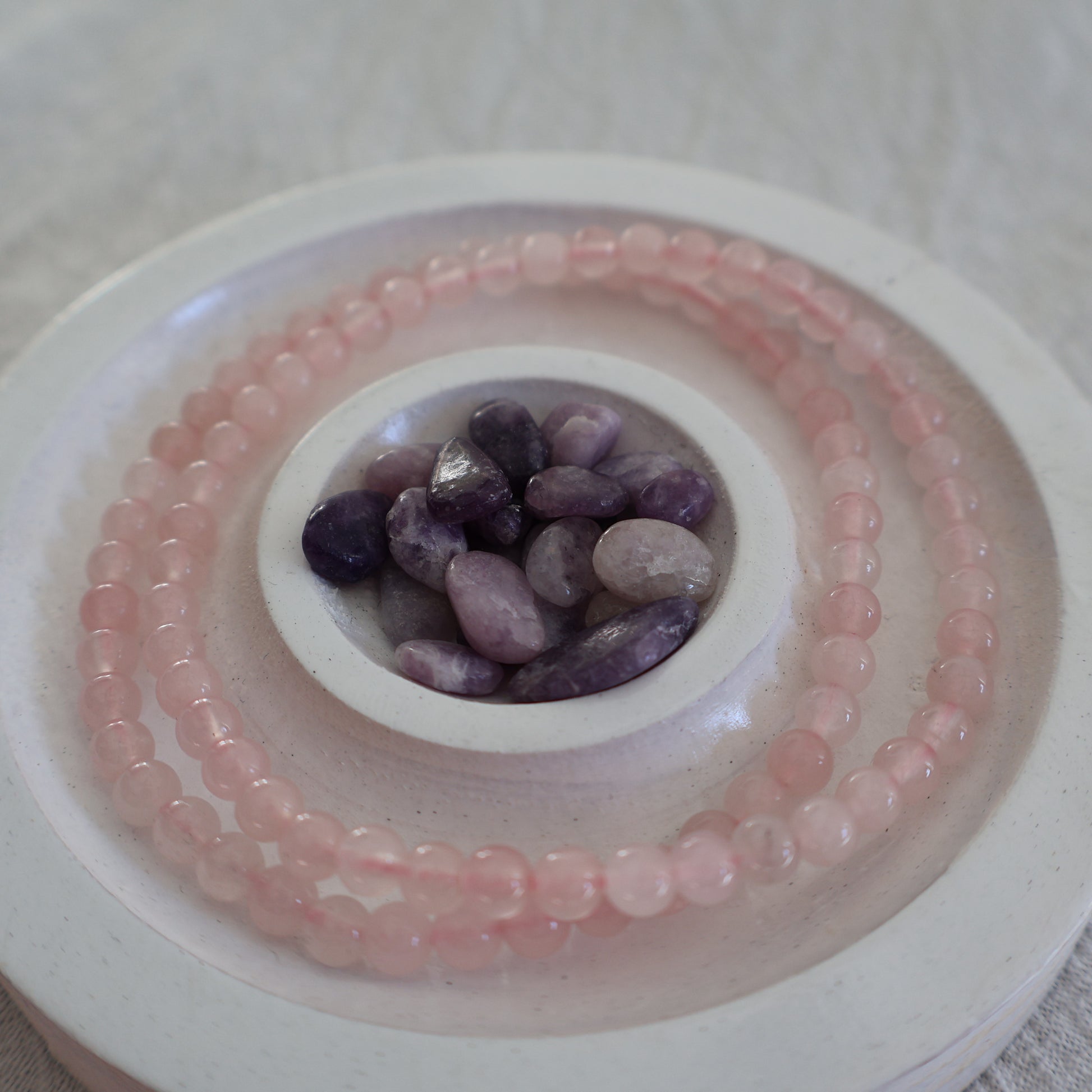 Wearing rose quartz promotes compassion, emotional healing, and self-love. It encourages kindness, calms the heart, and supports harmonious relationships, making these bracelets a tender reminder to nurture yourself and others.