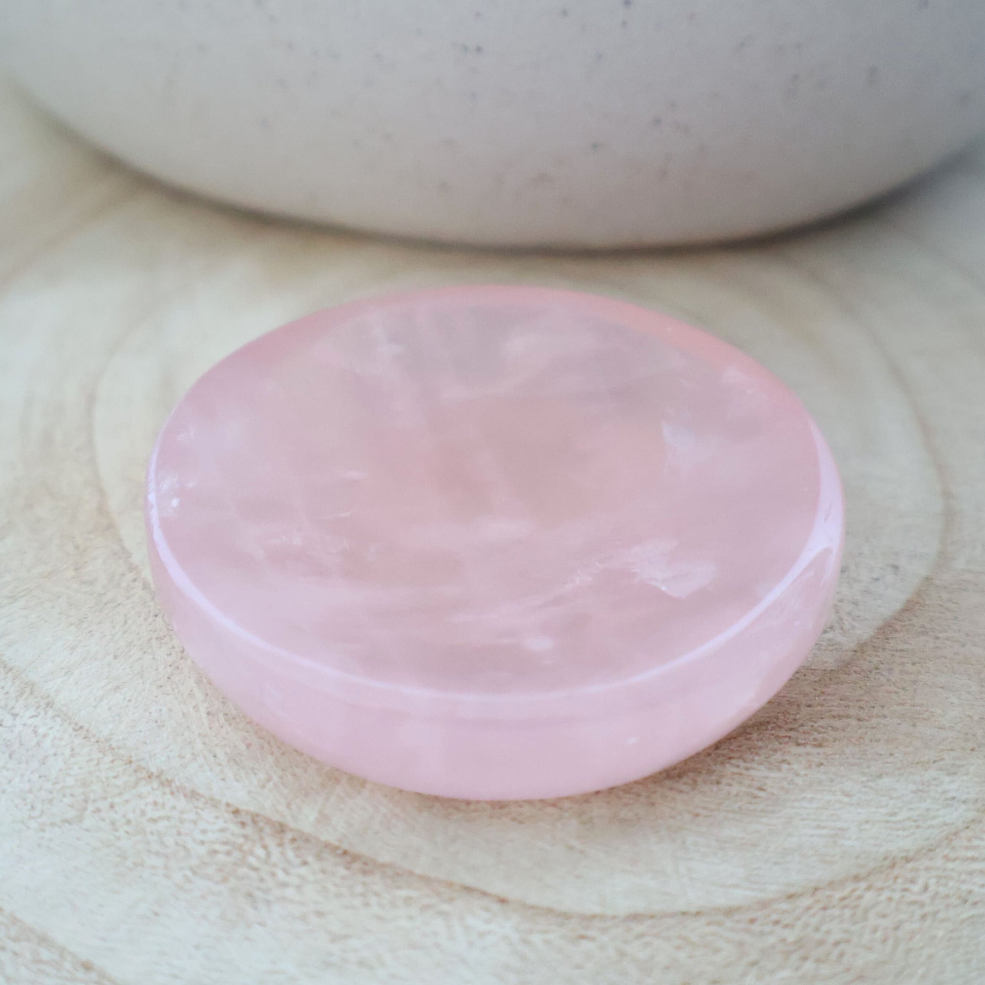 This small Rose Quartz bowl is a sweet and versatile piece, perfect for adding a soft, calming touch to your space.